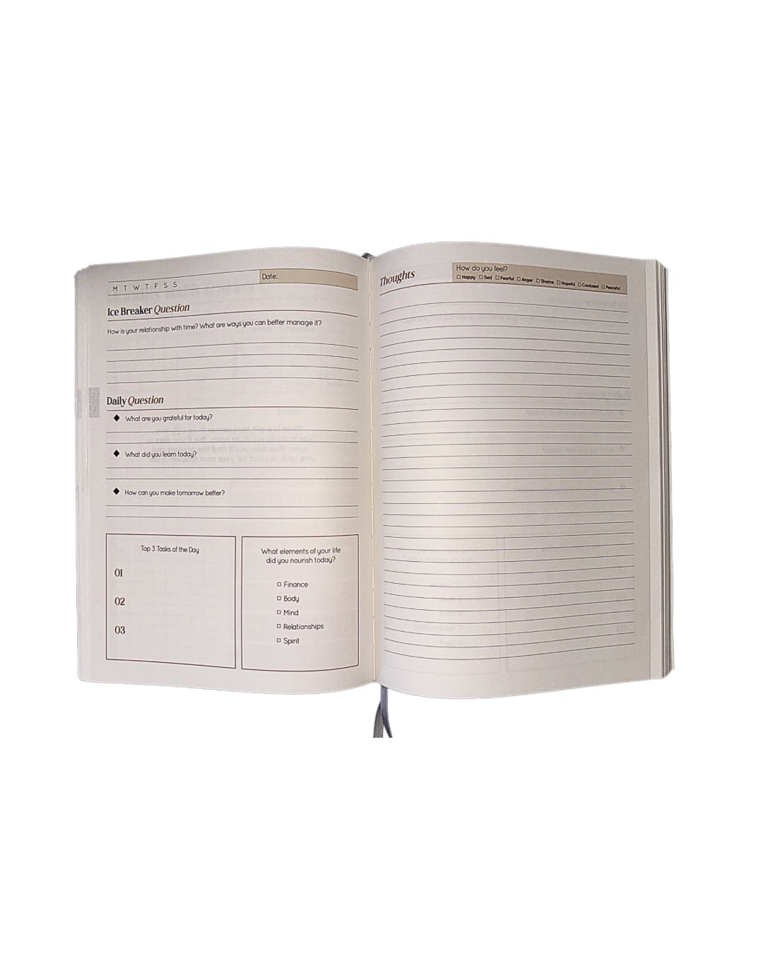 This is a beautiful journal/planner that allows for more thought and dig deep for responses, as desired. The quality of the material was better than expected which makes me quite happy. Have already recommended.